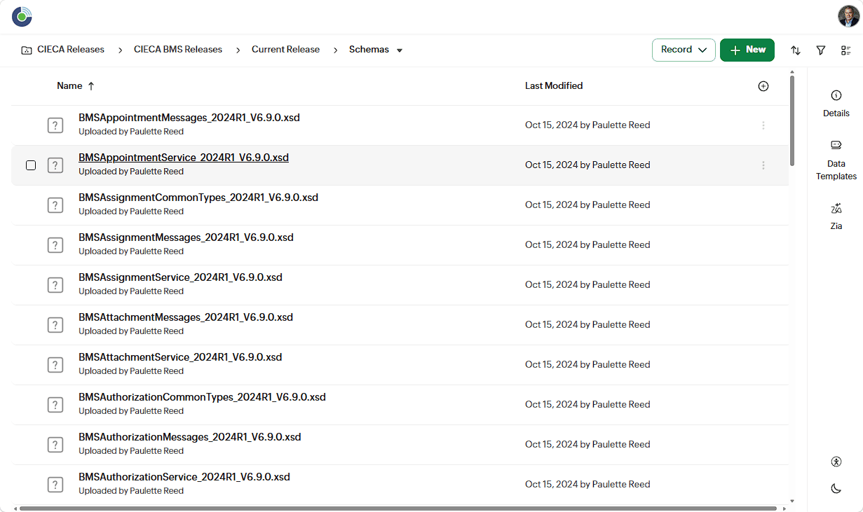 - BMS (XML) Schemas: BMS schemas are listed by service name. For example, the Assignment schema is listed as BMSAssignmentMessage_(release version).